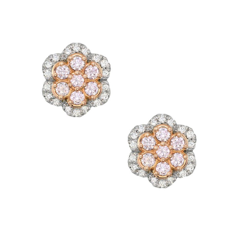 Pink diamond studs are a truly unique and meaningful present. The Blush Alice Earrings feature both white and pink round brilliant cut diamonds, crafted in 18ct rose and white gold
