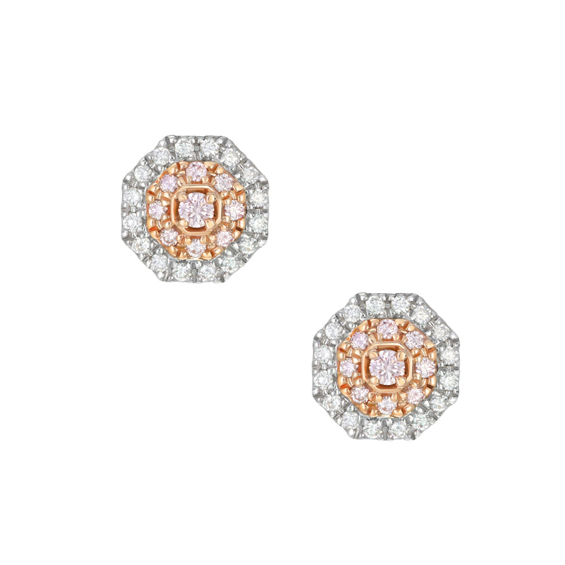 Addison is a unique and trendy piece, featuring an exquisite Argyle pink diamond as the feature stone, haloed by smaller pink diamonds and fine white diamonds in a unique octagonal setting. Crafted in 18ct Rose and White Gold, these earrings are stylish and add an elegant touch to your everyday look.