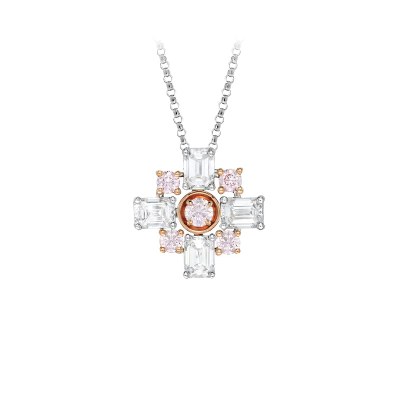 The Kimberley Spring Magnolia Necklace combines luxury and wearbility, featuring a stunning pink diamond surrounded by a delicate arrangement of emerald cut white diamonds and smaller pink diamonds in a floral display. Capturing the rare beauty of pink diamonds from the Argyle mine, this necklace is the perfect luxe touch to add to your jewellery style!