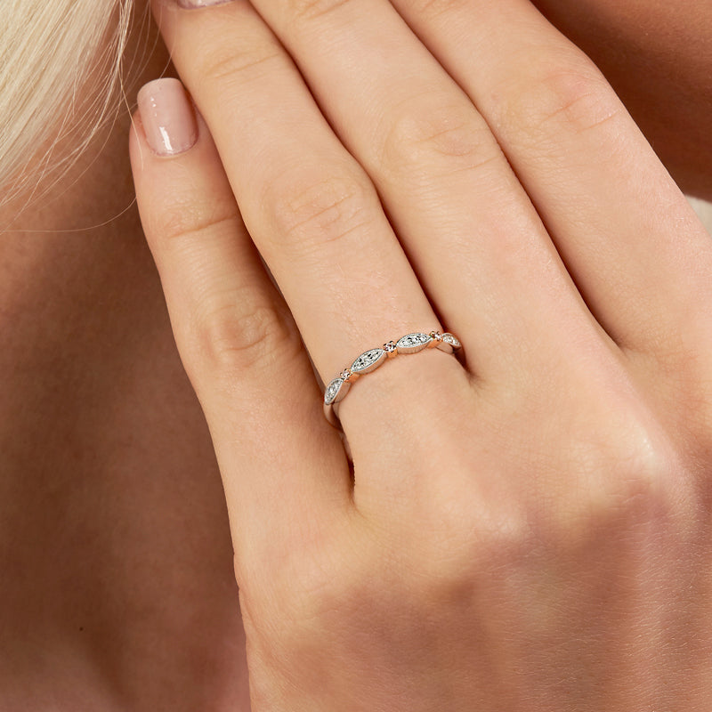Sweet and feminine, the Scintilla Blush pink diamond stacker ring showcases an array of fancy light pink and white diamonds, set in a slim band design. This piece is crafted in 18ct rose and white gold and makes the perfect everyday stacker ring or delicate wedding band.